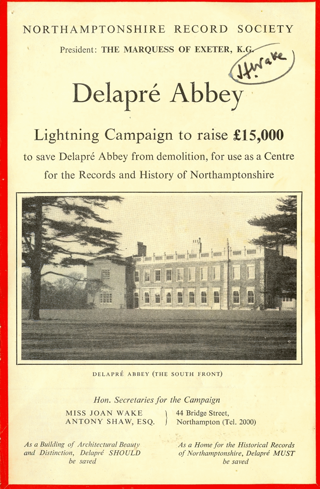 There was immediate public outcry and a “Save Delapré Campaign” quickly begun.